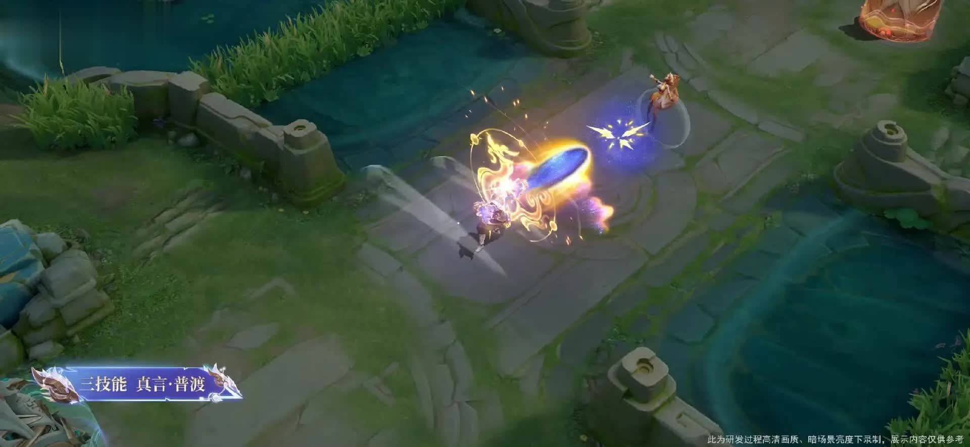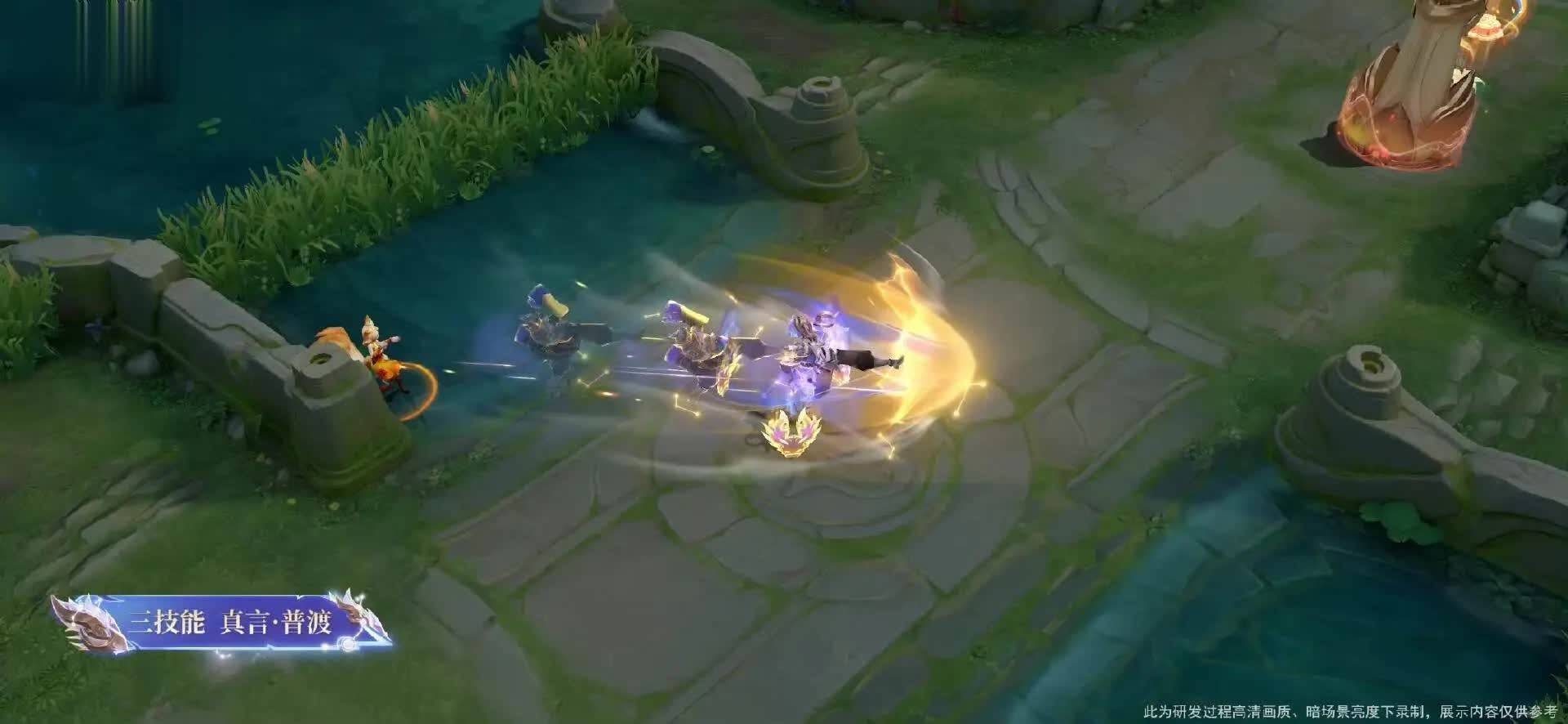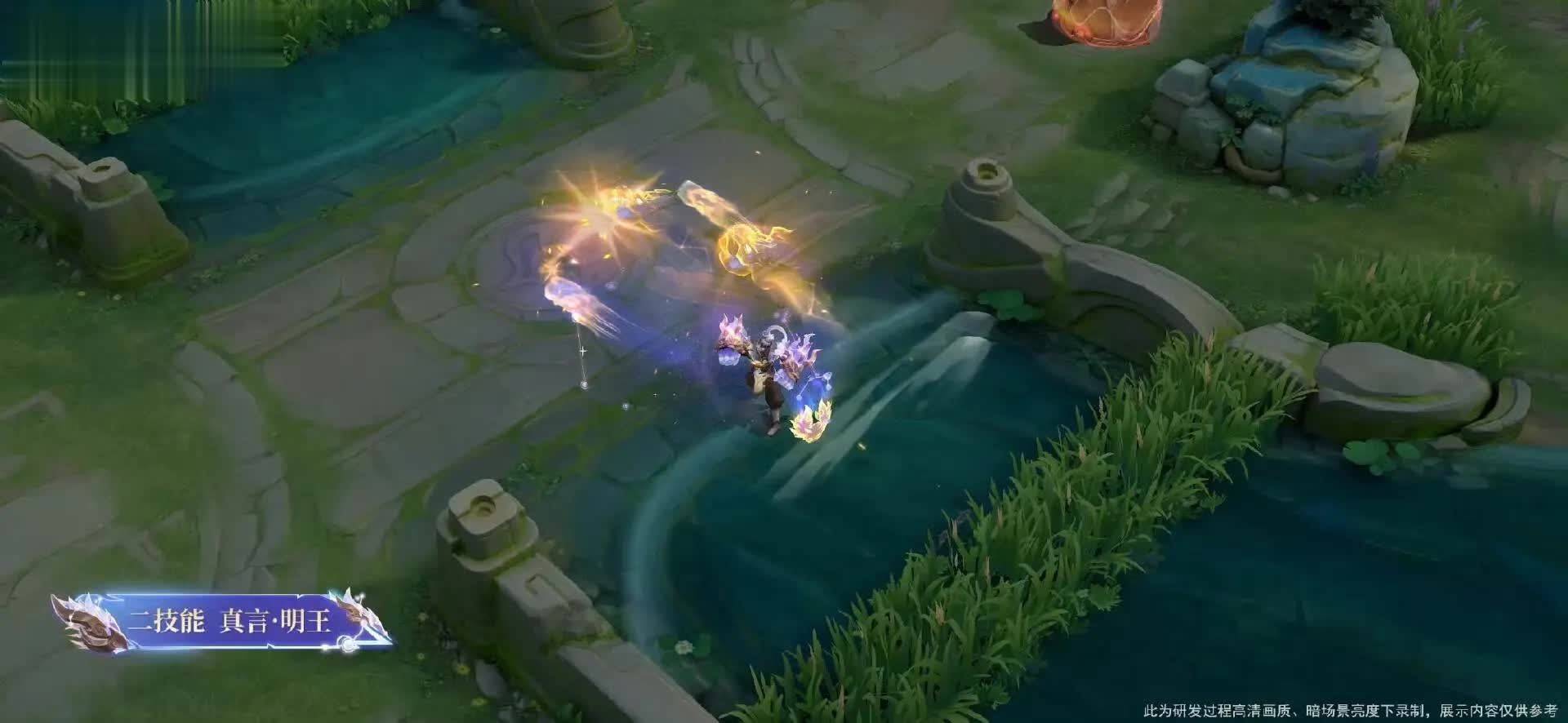 第二段是位移手段,施法后会出现达摩身影,后头跟班影子殊效,还有拖尾殊效,融入了二十八星宿关连设定。