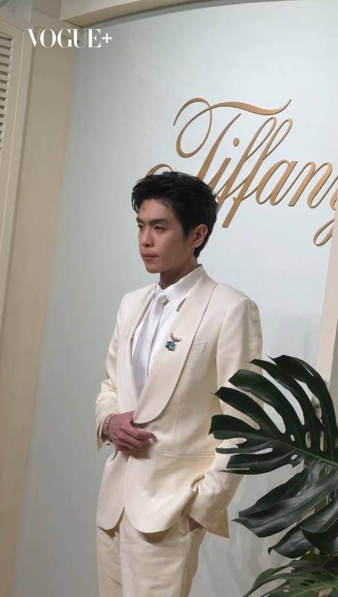 西装剪裁多礼,莫得过剩的装潢,显得干净利落,胸前佩带着品牌一款“石上鸟”胸针,短暂晋升了合座造型的高档感,也呼应了品牌的经典贪图。