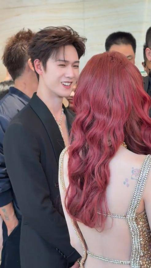 先说提及首亮相的宋雨琦,她今日的造型如实亮眼,一头惹眼的红发特别吸睛,搭配一条金色吊带裙。