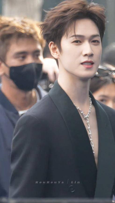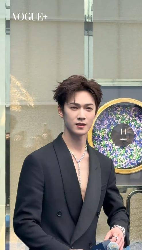 颈间佩带着品牌珠宝,和他少年清俊的气质酿成了热烈反差。