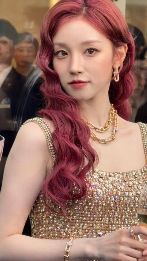宋雨琦算作品牌大使,此次的造型如实花了心念念,红发和金裙的搭配,既恰当她的气质,又能突显品牌珠宝的考究。