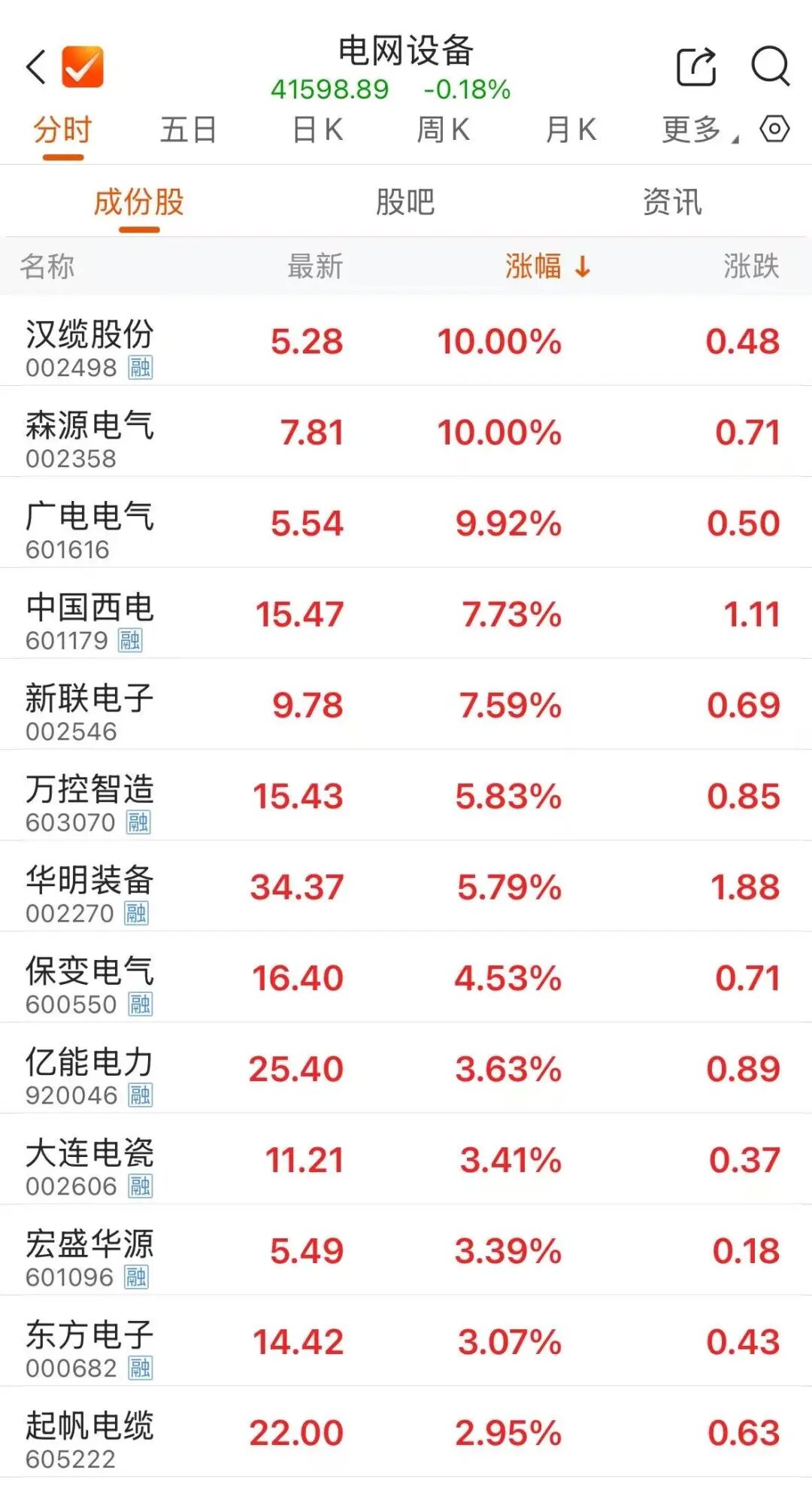 电网成立股反回生跃,汉缆股份、森源电气、广电电气3连板,新联电子、中国西电、宏盛华源、保变电气等跟涨。