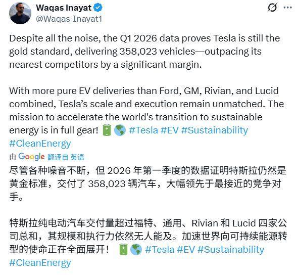 更让投资者担忧的是环比数据。与2025年第四季度的418227辆比较,本年第一季度托福量下滑了14%。彭博社指出,这是特斯拉自2022年中期(放弃全球工场停工期)以来最差的季度收获,亦然公司流通第二个季度未达到商场预期。